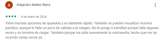 La Bet365 app en México cuenta con una calificación de 4.5 en Google Play, la tienda de aplicaciones Android, y 4.8 en la App Store de iOS. Los usuarios, en general, tienen opiniones favorables de la app, sin embargo destacan que puede llegar a fallar o las transmisiones pueden tener menor calidad, sobre todo cuando se usa la app en dispositivos más viejos. Te compartimos aquí algunas opiniones de usuarios reales de la app Bet365, los cuales han comentado en sus respectivas tiendas de aplicaciones.