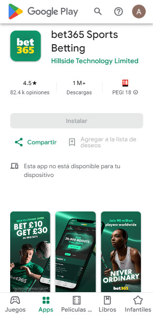- Abre la aplicación Google Play Store en tu dispositivo Android. O busca el link Bet365 descargar app para Android en el sitio web de la plataforma.